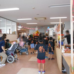 『ワッショイ』の掛け声も大きな声でこうふく園のなかを練り歩きます。